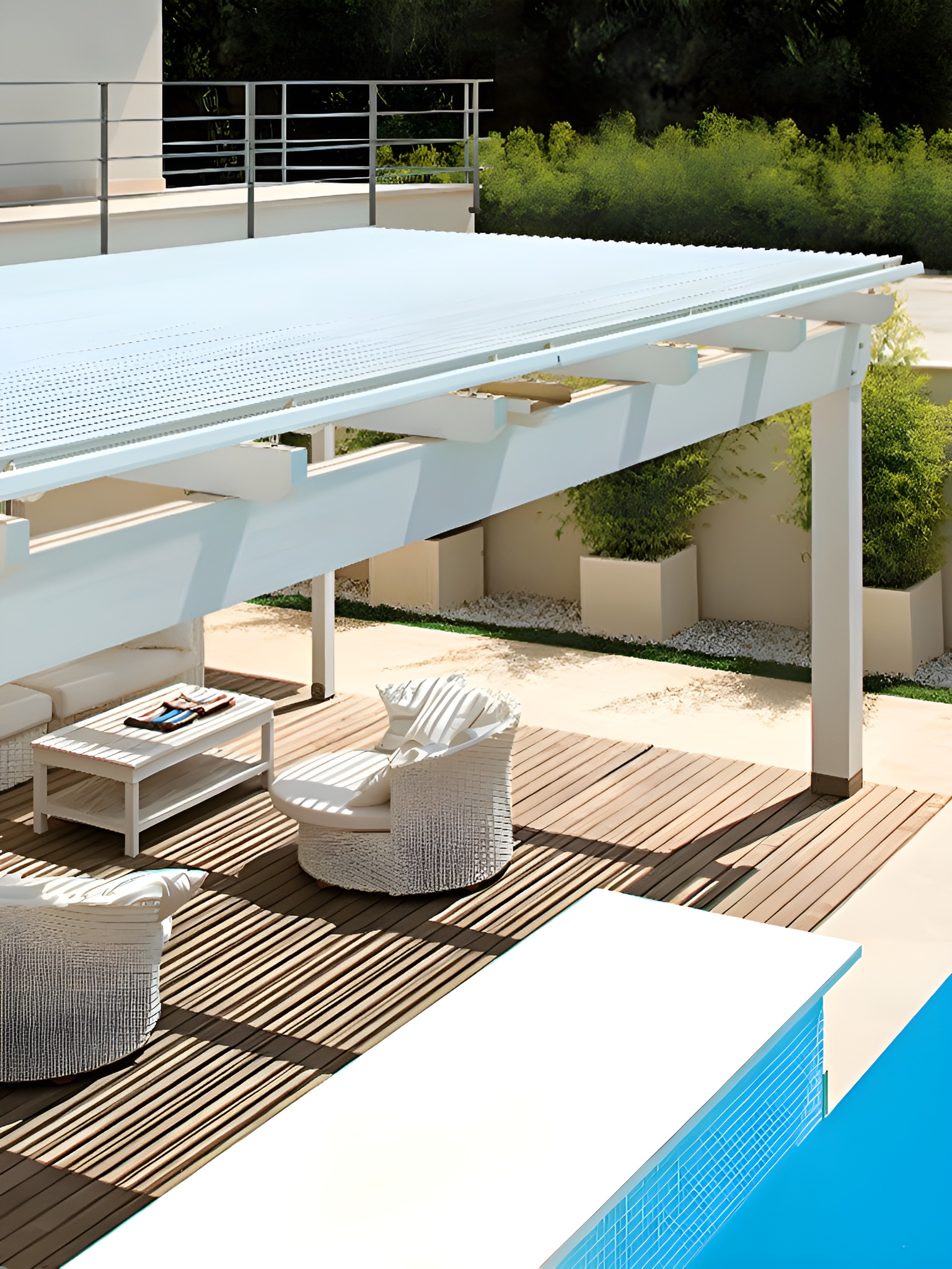 RAIN COVER è il sistema di schermatura e copertura progettato per garantire la massima fruibilità degli spazi esterni in ogni stagione. Le sue lame di alluminio regolabili offrono la massima schermatura dal sole e una perfetta tenuta dalla pioggia (fino a 6 mm/h) quando sono in posizione di chiusura ermetica.