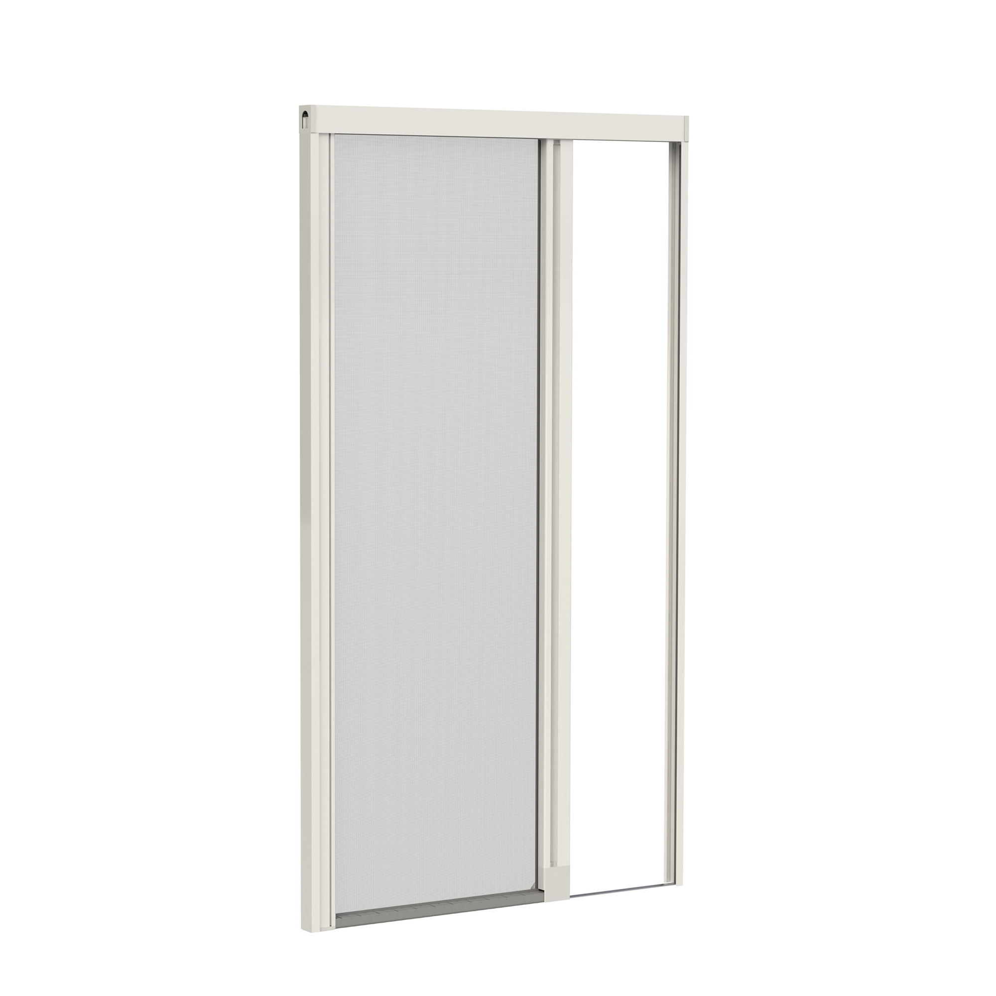 La zanzariera presenta uno scorrimento laterale con avvolgimento a molla, che permette all’utente di arrestare manualmente l’anta in qualsiasi punto. L’unità è configurabile con una o due ante (pannelli) e può coprire larghezze fino a 220 cm per anta, a seconda del tipo di rete scelto.